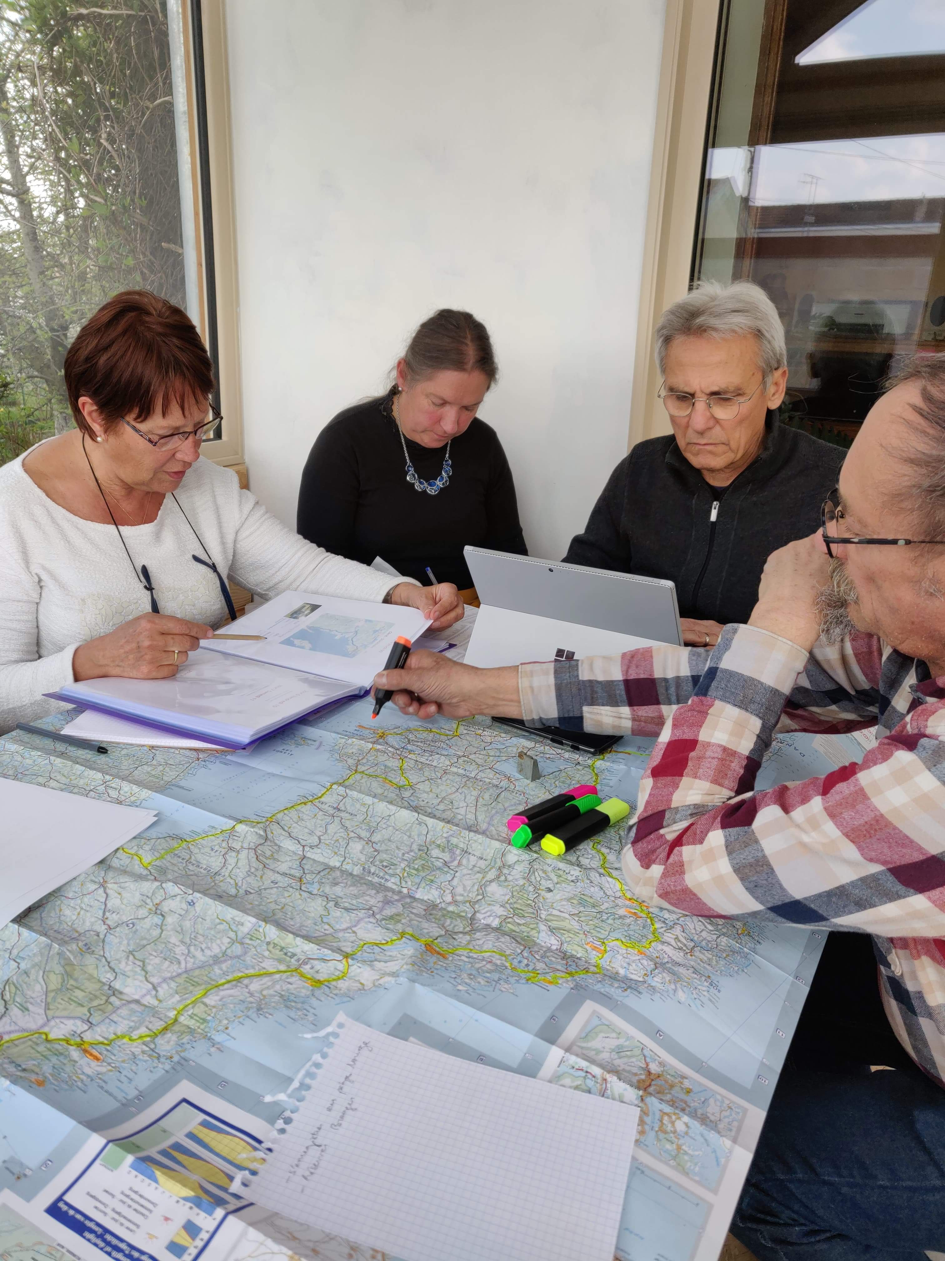 Dimanche 14 avril on se réunit à Mourmelon pour revoir notre parcours en détail. On vérifie toutes les étapes, les horaires des campings, la réservation du ferry si nécessaire... on a déjà bien voyagé avec tout ça. Denis nous a super bien préparé toutes les étapes avec les visites les points GPS. Il faut dire qu'on a un super coach.