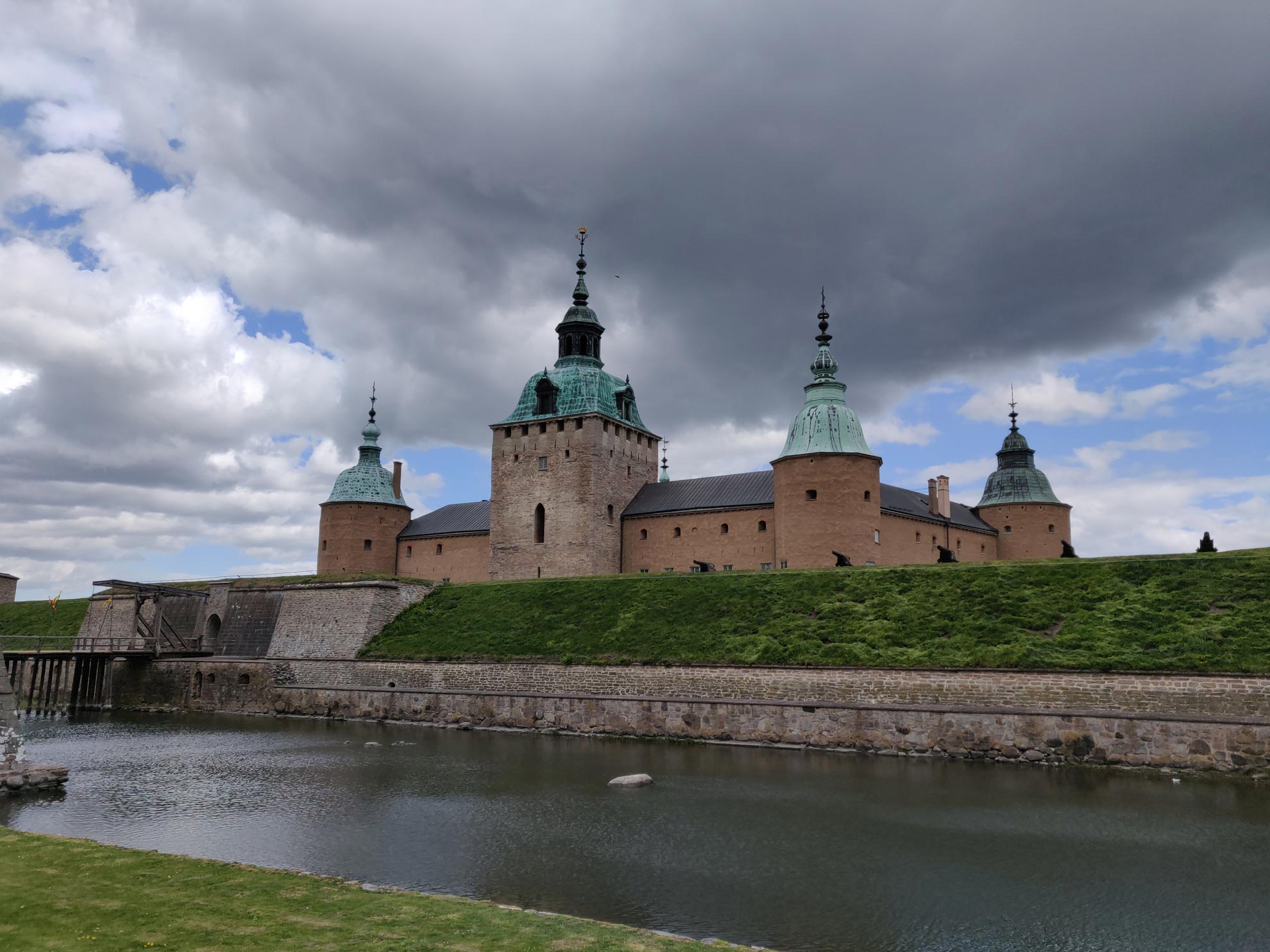 Nous avons visité le château de Kalmar, situé le long de la côte Est de la Suède, aussi appelé la clé de la Suède du fait de sa position stratégique. De belles grandes pièces avec cheminées, tapisseries et plafonds décorés ! Aussi de beaux costumes et de belles maquettes !