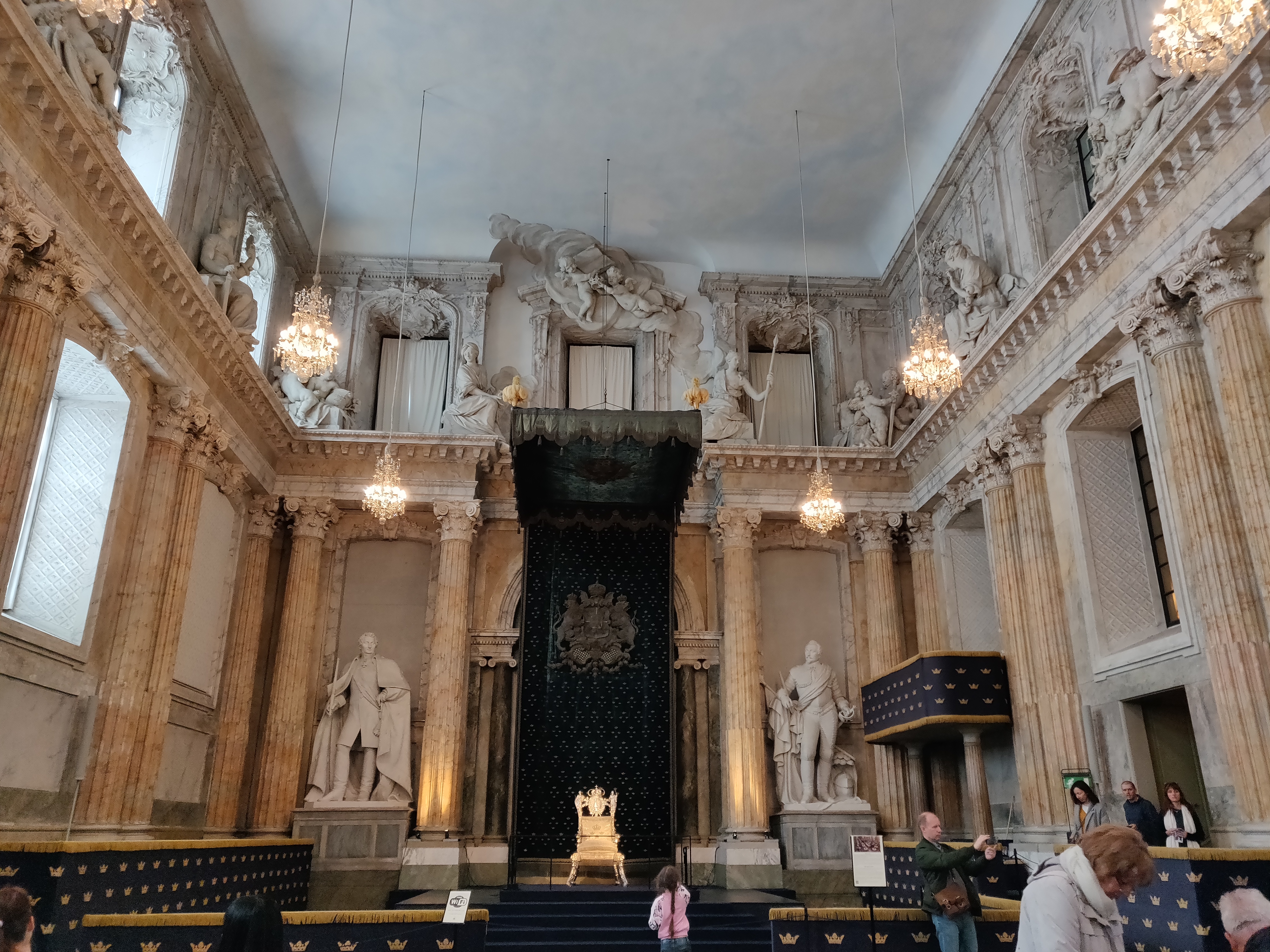Bien arrivés à Stockholm ! Nous sommes au camping Bredang où nous étions deja allé avec Denis en 2016 pour l'Eurovision ! Cécile a pris le métro pour la première fois (et a été adorable comme d'habitude). Notre première visite fut celle des appartements royaux du palais royal, de l'or, des trones, des tapisseries etc... on en prends plein les yeux ! puis premier restaurant, on goute du hareng ou encore des boulettes suédoises, miam !