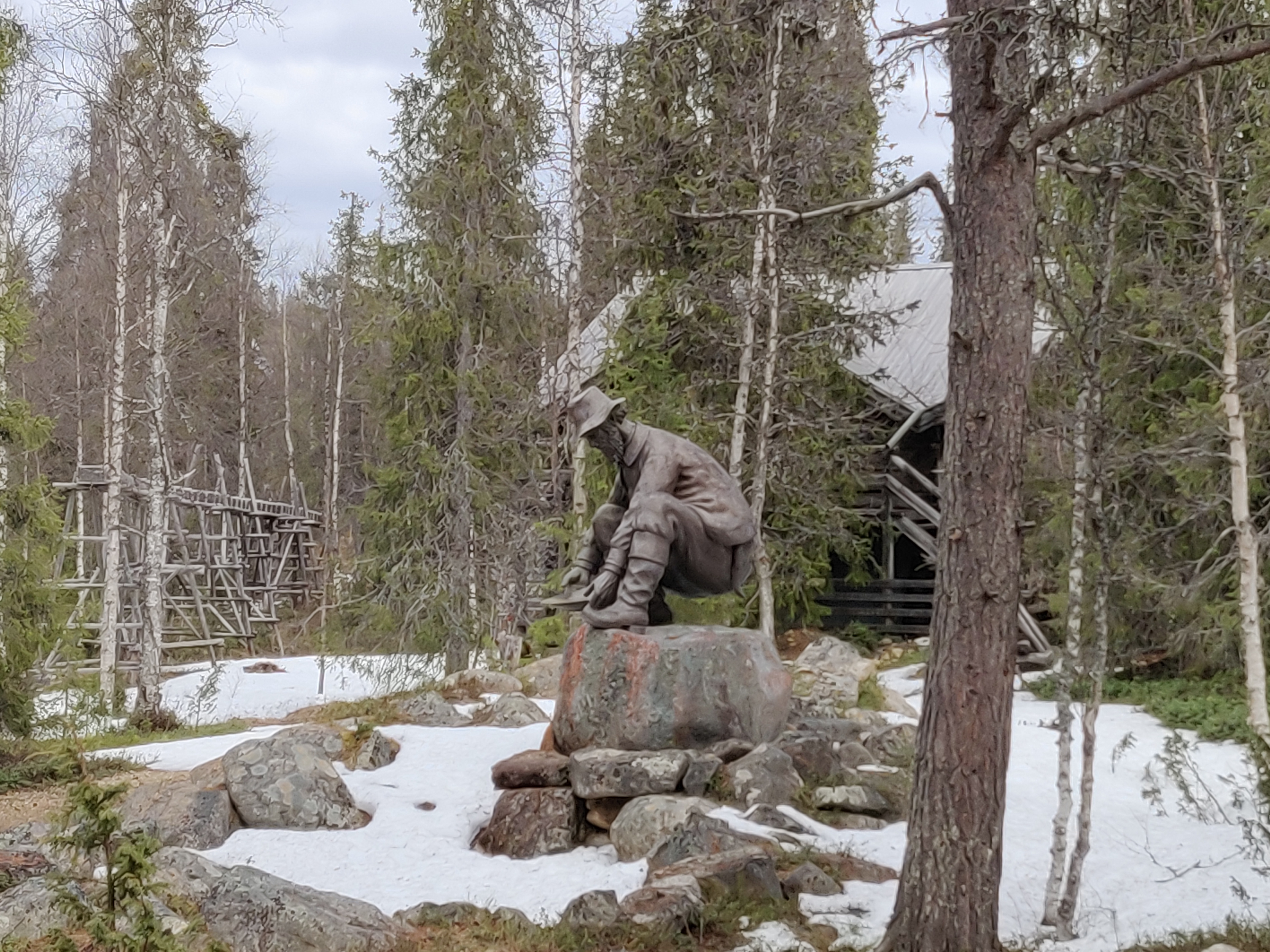 Le musée de l'or de Tankavaara en Finlande est situé au milieu des bois. Nous sommes arrivés à 15h soit 1h avant la fermeture et c'était très calme. Nous avons payé moitié prix soit 6€ au lieu de 12€ car il y avait des travaux sur la clim. On a eu le droit à un film d'introduction sur l'orpaillage à Tankavaara en français puis tous le musée juste pour nous et même au prêt d'une poussette pour Cécile ! Il y avait une partie sur l'orpaillage et les minerais locaux ainsi qu'une partie internationale sur les chercheurs d'or du monde entier.