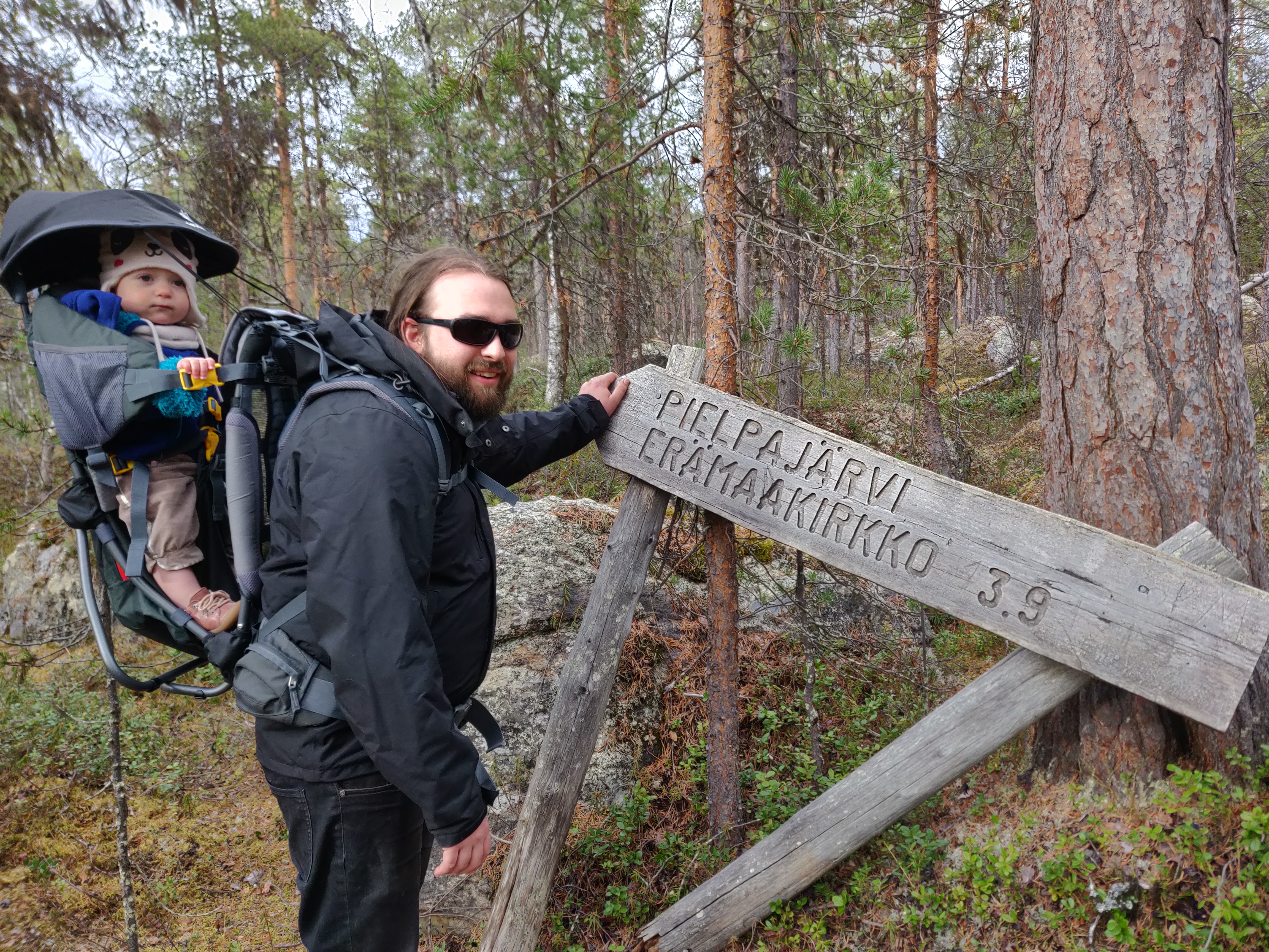L'église de Pielpajärvi est une église en bois en plein milieu de la forêt de la laponie finlandaise. Pour y accéder il faut marcher 4,5km sur un petit chemin escarpé avec des racines et des pierres. Nous sommes partis la fleur au fusil pensant qu'il y avait 2,5km et finalement on est rentré à 22h30 de balade bien fatigués ! Mais cela valait le coup, la balade était magnifique, l'église était super belle, aussi bien l'extérieur que l'intérieur et on a profité pour loguer une cache !