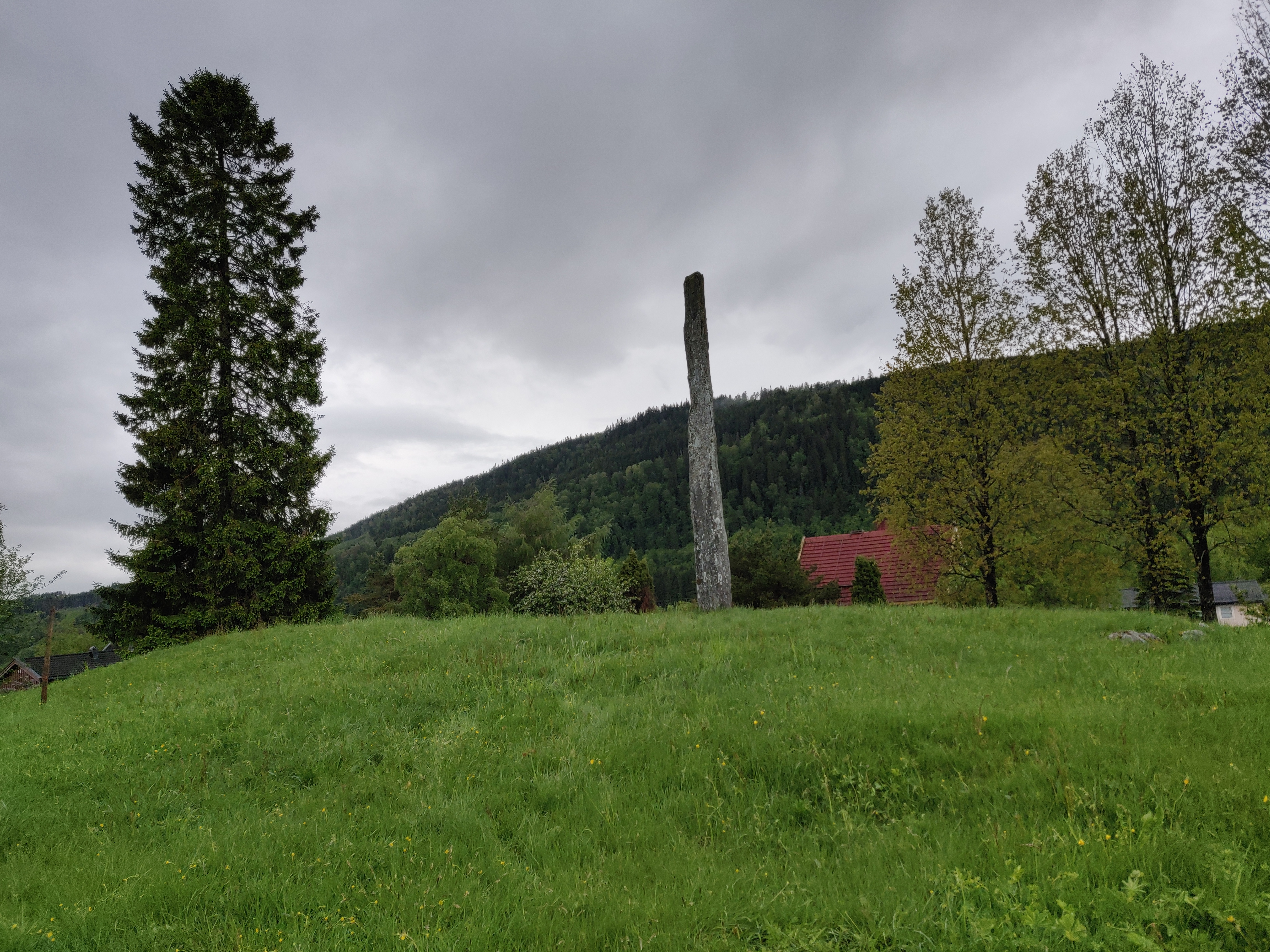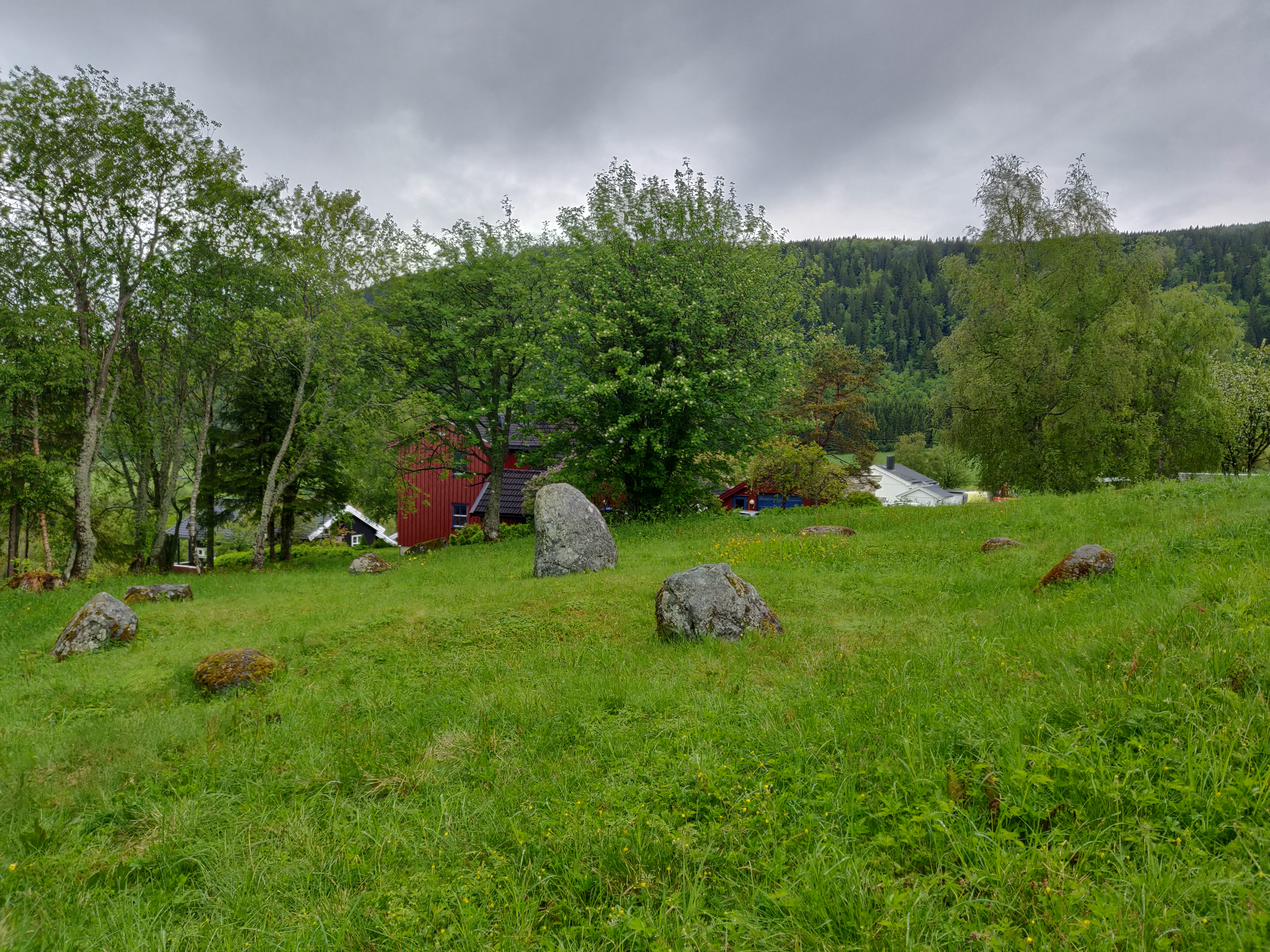 Nous avons visité des menhirs près de la ville de Steinkjer. Pas faciles à trouver ni à se garer, ce n'est pas très touristique mais c'est ce qui nous plaît et les protègent aussi. Également des tumulus qui devaient servir de sépulture à des personnalités de l'époque (0 à 600 ans). Cécile a découvert ses chaussures mouillées par l'herbe humide c'était rigolo !