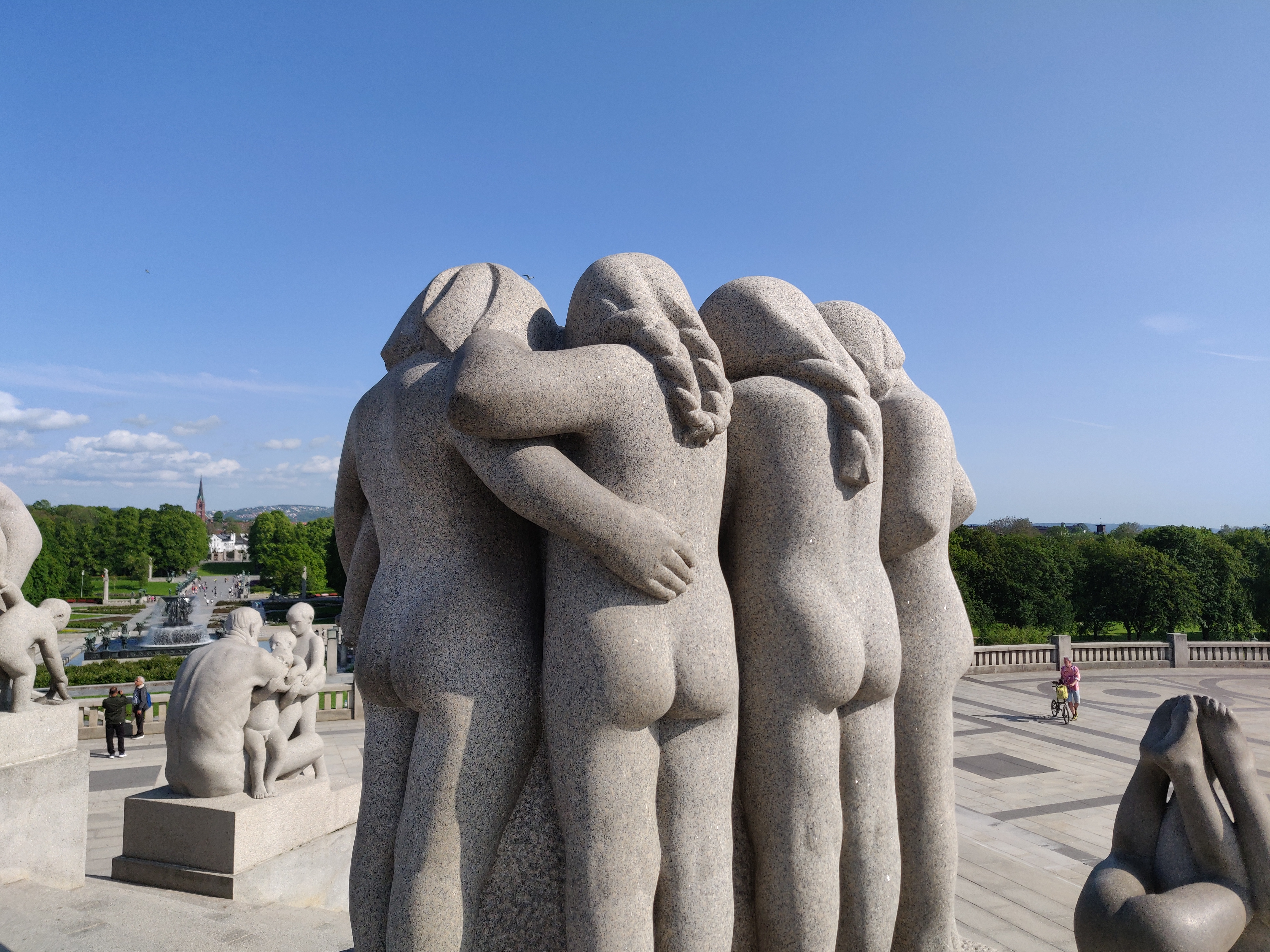 C'est l'un des endroits les plus visités d'Oslo. Nous l'avons parcouru sous le soleil ! Il y a de nombreuses statues sculptées par Gustav Vigeland au XXème siècle sur le thème de la destinée de l'homme, de l'enfance à la vie adulte. Cécile était très impressionnée et intéressée par toutes les statues et Francine a adoré le parc !